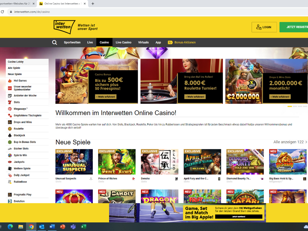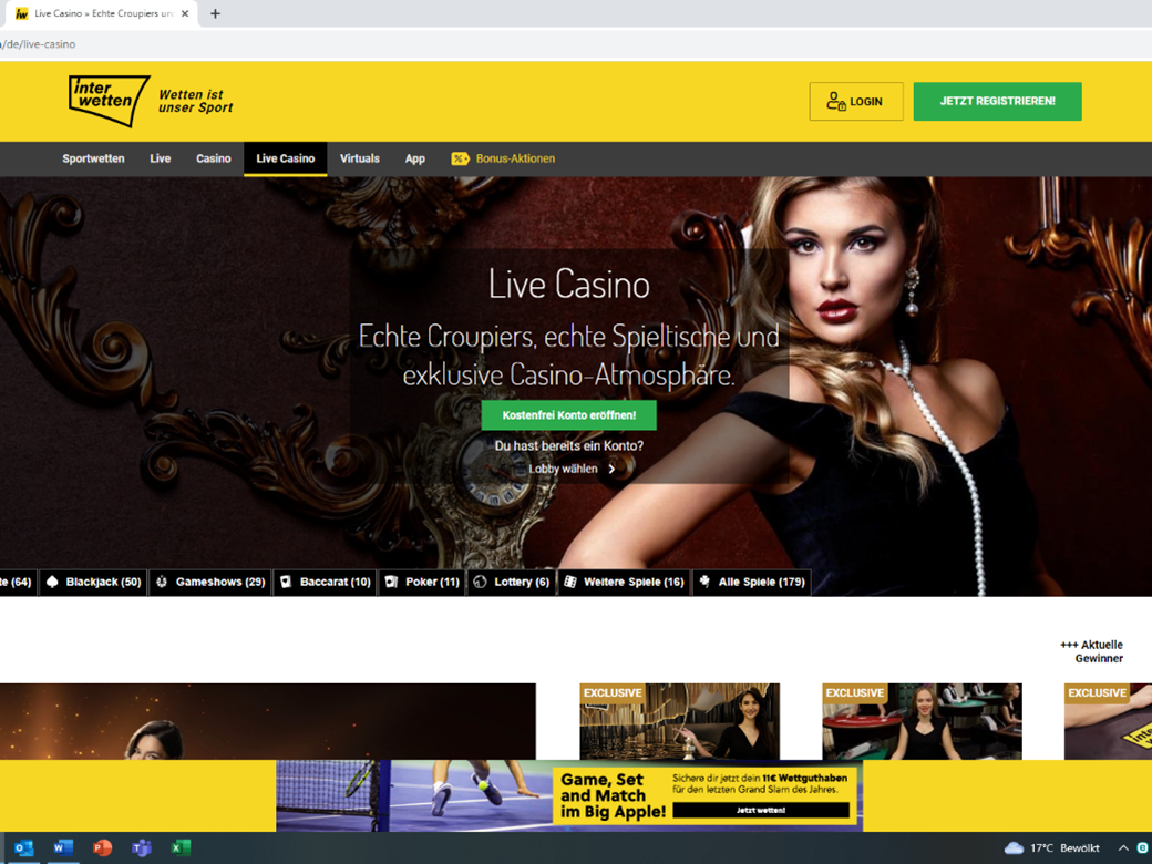 Mitten auf der Startseite (wenn man herunterscrollt) finden sich Verlinkungen in Form von Bildern zu Online-Casino-Spielen.
